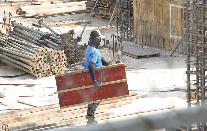 Foreign contract workers employed in Taiwan’s manufacturing and construction sectors earned slightly less last year than in 2022, survey results released by the Ministry of Labor yesterday showed.