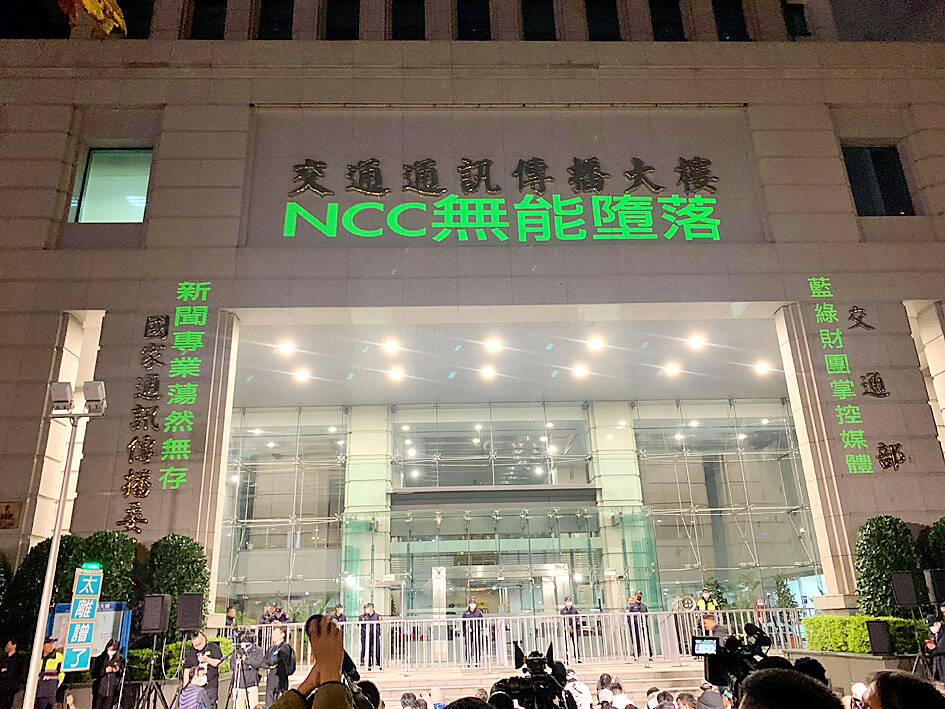 TPP legislator-at-large candidate Huang Kuo-chang (黃國昌), who organized the rally, said he protested in the same spot in 2012 against the NCC for allowing big corporations to control news media and impede free speech.
