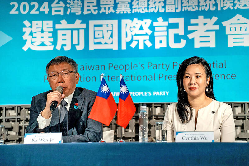 Elaborating on his national defense policies, Ko said he would seek to increase Taiwan’s defense budget to 3 percent of GDP, above the record 2.5 percent the administration of President Tsai Ying-wen (蔡英文) proposed in its 2024 budget.