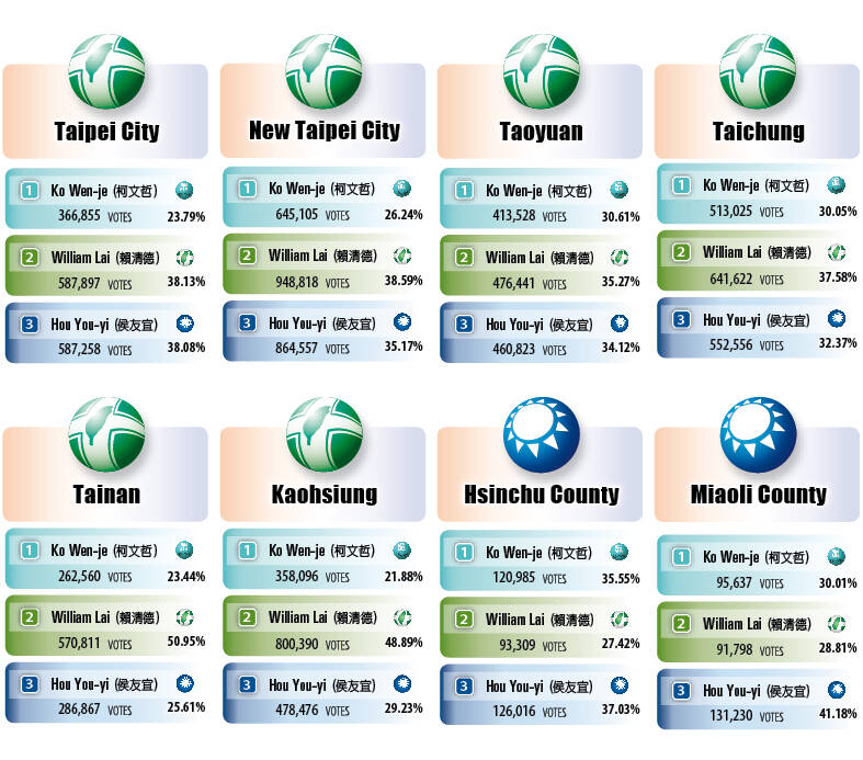 For full results, visit the Central Election Commission’s Web site at www.cec.gov.tw.