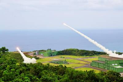 Taiwan lacks effective and cost-efficient armaments to intercept rockets, making the planned “T-Dome” interception system necessary, two experts said on Tuesday. The concerns were raised after China’s military fired two waves of rockets during live-fire drills around Taiwan on Tuesday, part of two-day exercises code-named “Justice Mission 2025.” The first wave involved 17 rockets launched at 9am from Pingtan in China’s Fujian Province, according to Lieutenant General Hsieh Jih-sheng (謝日升) of the Office of the Deputy Chief of the General Staff for Intelligence at the Ministry of National Defense. Those rockets landed 70 nautical miles (129.6km) northeast of Keelung without flying over Taiwan,