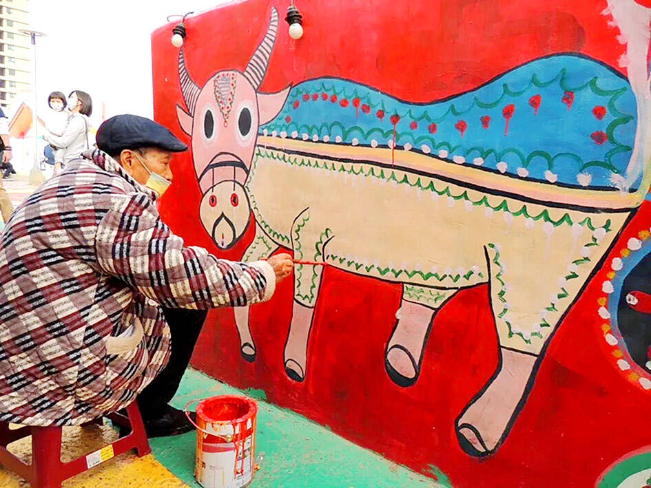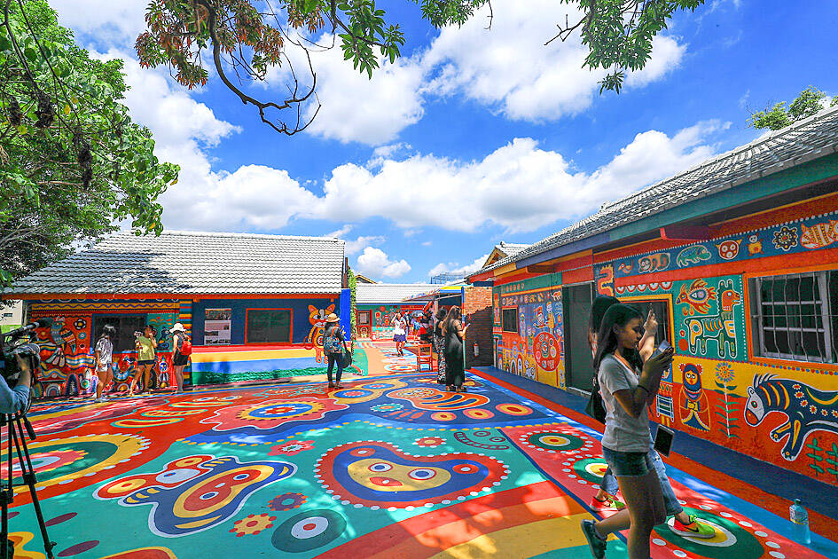 Huang, a veteran and resident of a military settlement in Taichung’s Nantun District (南屯) that had been slated for demolition, in 2008 painted vivid communal murals that drew accolades from the art world, resulting in the village’s transformation from an illegal construction to a beloved tourist attraction.