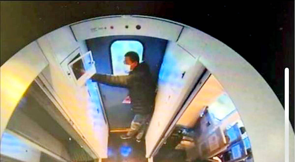 The Railway Police Bureau’s Hualien Precinct on Monday said that the passenger, a Taitung resident, could be fined NT$10,000 to NT$1 million under Article 68-1 of the Railway Act (鐵路法).