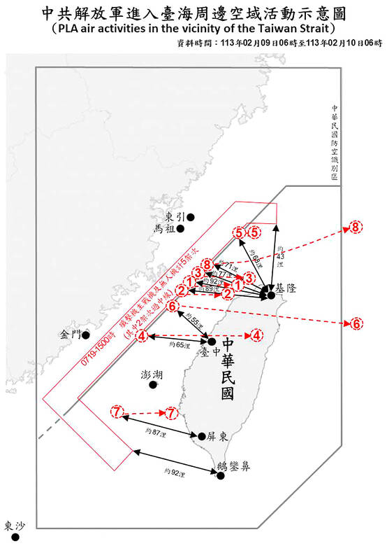 Two crossed the northern part of Taiwan, a map provided by the ministry showed. The others approached the coast before vanishing, although one flew over the sea to the north of Taiwan.