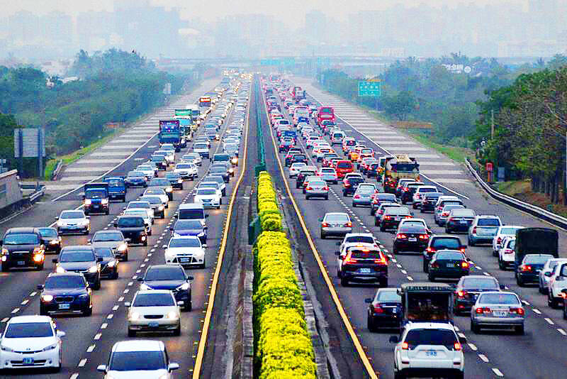 On the Formosa Freeway (Freeway No. 3), congestion was seen from the Shanhua Township (善化) to Guantian Township (官田) section, the Jiouru Township (九如) to Yanchao Township (燕巢) section, and the Shueishang exchange to Jhongpu (中埔), the service said.