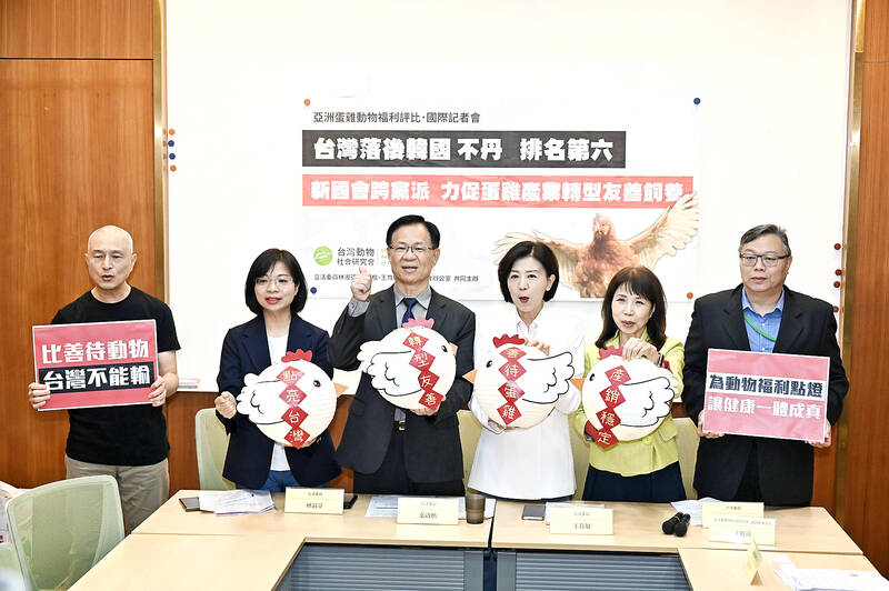 Lawmakers and activists on Thursday urged the government to support a transition to cage-free chicken farming after Taiwan ranked sixth out of 17 countries in Asia in an independent report that evaluated countries on the progress made toward abolishing battery cages.