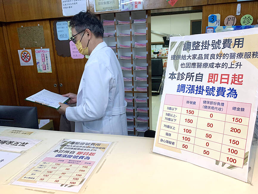 The Taiwan Hospital Association, the Taiwan Nongovernmental Hospitals and Clinics Association and the Taiwan College of Healthcare Executive in a joint statement said that allowing hospitals and clinics to adjust registration fees was necessary to allow them to improve operations, reduce costs and enhance professionalism.
