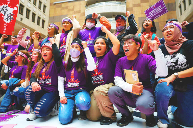 Activists and spokespeople for migrant workers from Southeast Asian countries said they were marking International Women’s Day, which was on Friday last week, and protesting discrimination, sexual harassment and unfair labor practices in Taiwan.