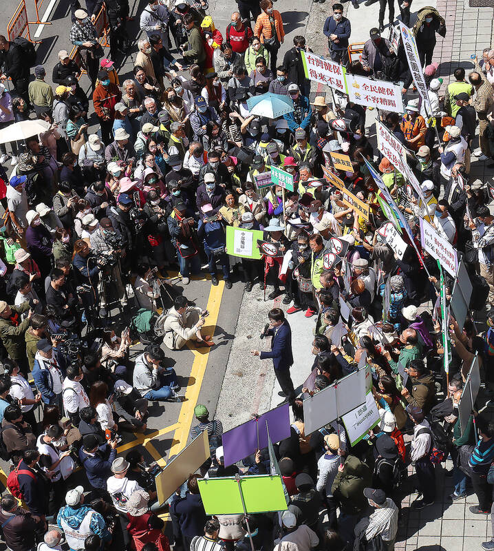 The demonstrators, who were protesting at a side entrance to the Legislative Yuan on Jinan Road, were mostly members of the Taiwan Association of University Professors and other organizations advocating Taiwanese independence.