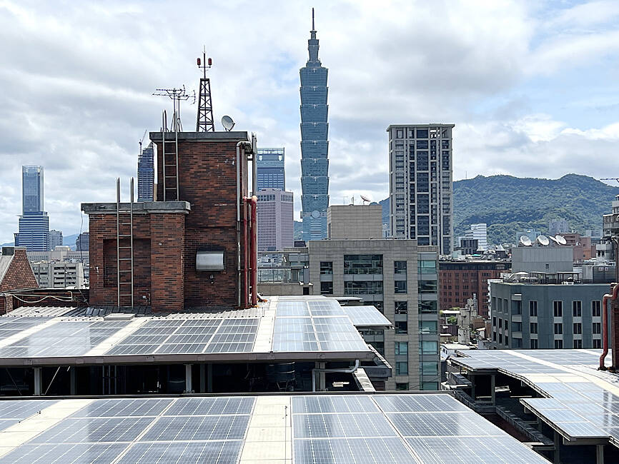 Taiwan Climate Action Network chairman Chao Chia-wei (趙家緯) said the EU’s standards, to be implemented in 2026, are for solar panels to be installed on all new public and commercial buildings with a surface area larger than 250m2.