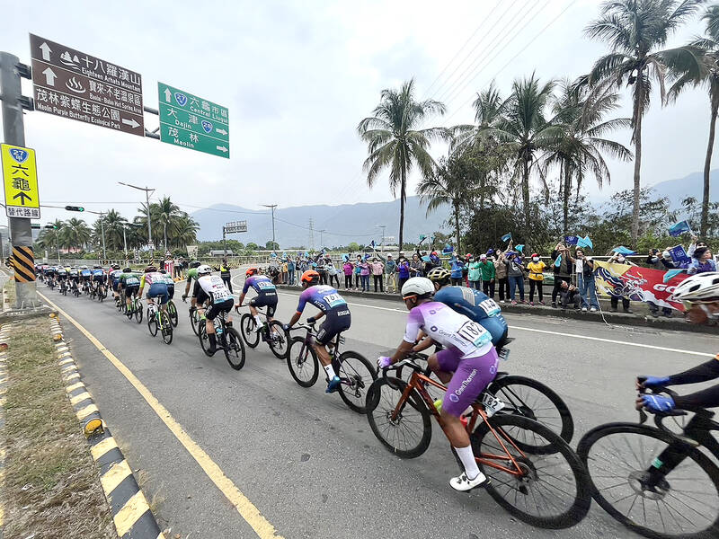 Cyclists compete in the 146.44km fifth and final stage of the Tour de Taiwan in Kaohsiung yesterday. Israel-Premier Tech’s Itamar Einhorn won the stage in 3 hours, 3 minutes, 43 seconds. Israel-Premier Tech’s Peter Joseph Blackmore clinched the overall win in 14 hours, 58 minutes, 21 seconds. Japanese rider Yuma Koishi of JCL Team UKYO was second, four seconds behind, while Carter Bettles from Roojai Insurance was third, five seconds behind the winner.