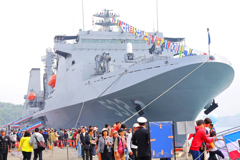 Yesterday, they were docked at the coastal city of Keelung where spectators cheered on the marines and snapped selfies with uniformed students from Taiwan’s naval academy joining the “friendship” tour.