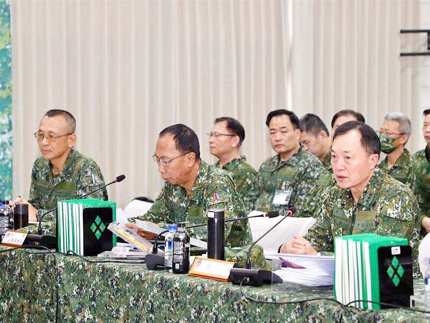 Tabletop games are conducted to allow top officers to form a whole-of-battlefield view and an understanding of enemy forces, order of battle, intent, effective strength and tactics, Army Commander General Chung Shu-ming (鍾樹明) was cited as saying during a tour of the Third Combat Theater Command.