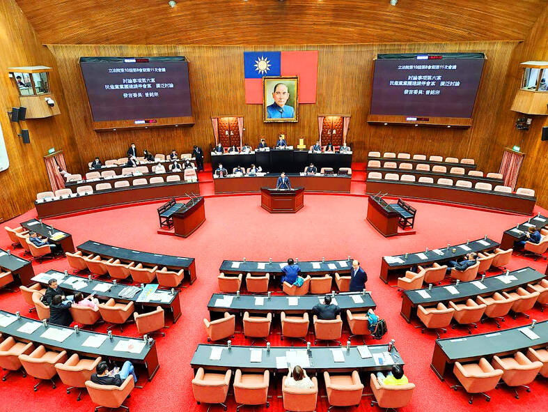 The draft act is part of the KMT caucus’ legislative package that it pledged to complete to “return rights to the people,” along with the amendments to the Criminal Code (刑法) and the Act Governing the Legislative Yuan’s Power (立法院職權行使法), KMT caucus secretary-general Hung Mong-kai (洪孟楷) said, adding that the review could begin in the middle of this month.