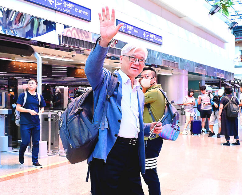 Speaking with reporters at Taiwan Taoyuan International Airport, Hsia did not reveal the details of his trip, saying only that he would meet with many “old friends” in Washington, as well as KMT members in San Francisco.