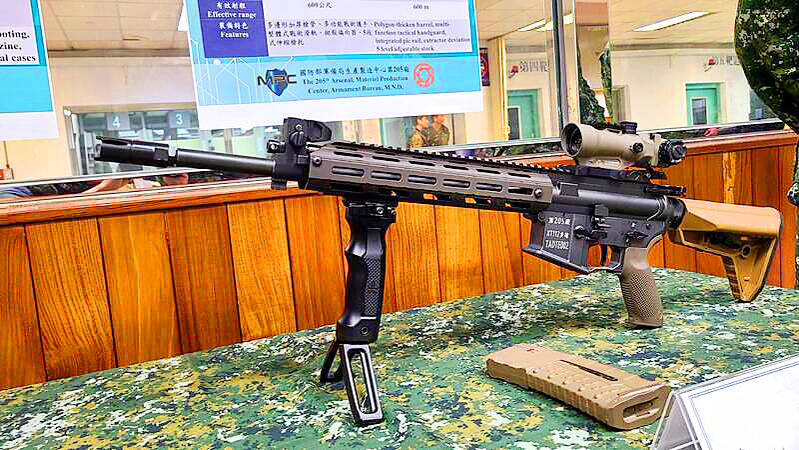 The T112 combat rifle, which is scheduled to replace the T91 assault rifle the Republic of China Army currently uses, is a 5.56x54mm weapon weighing 3.5kg and measuring 940mm, with a fully extended telescoping stock, the Armaments Bureau’s 205th Arsenal said.