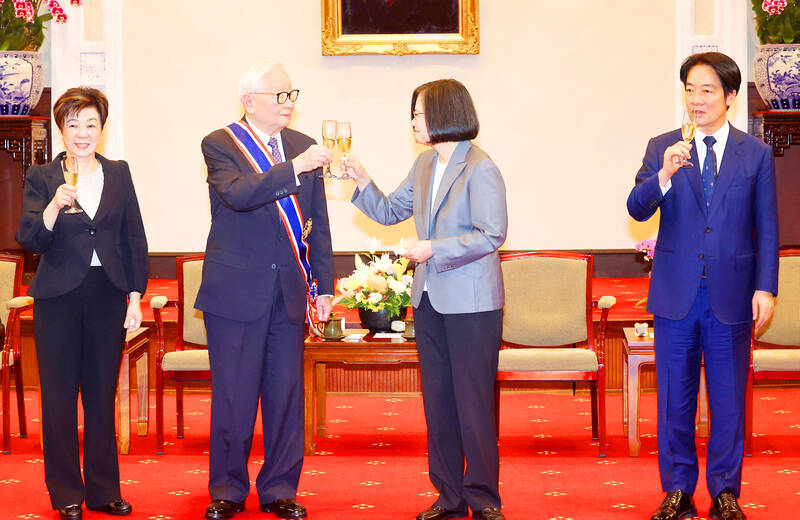 Chang thanked Tsai for the recognition, adding that his creation of TSMC “established a model of a world-class technology company in Taiwan, and made some contributions to Taiwan’s economic growth.”