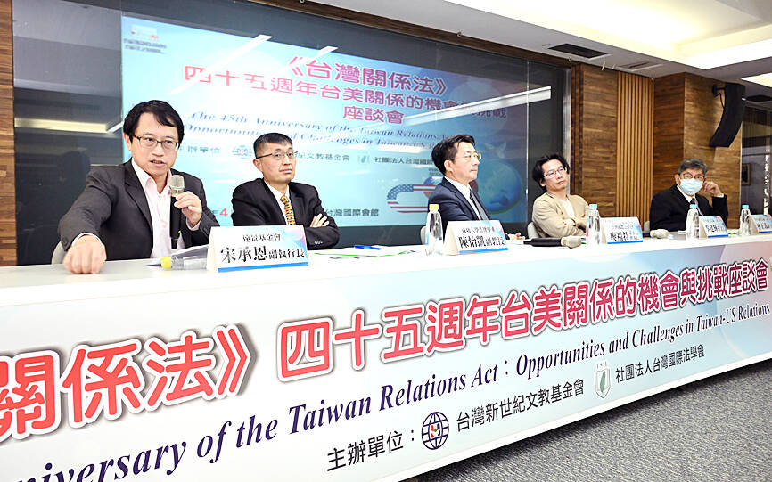 Prospect Foundation deputy executive director Song Cheng-en (宋承恩) made the remarks at a symposium titled “The 45th Anniversary of the Taiwan Relations Act — Opportunities and Challenges in Taiwan-US Relations” held by the Taiwan New Century Foundation and the Taiwanese Society of International Law.