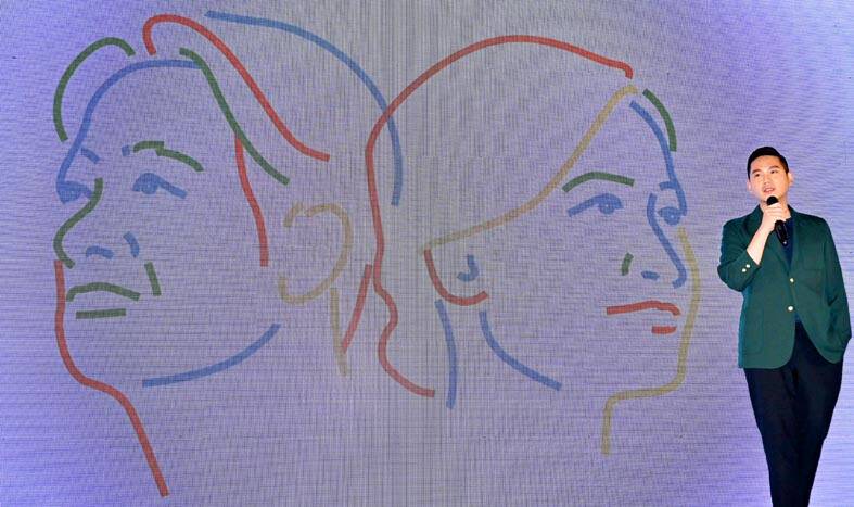 Stylized portraits of president-elect William Lai (賴清德) and vice president-elect Hsiao Bi-khim (蕭美琴) using the four colors symbolize hope that the two would lead Taiwanese to a better future, Yen told a news conference in Taipei.