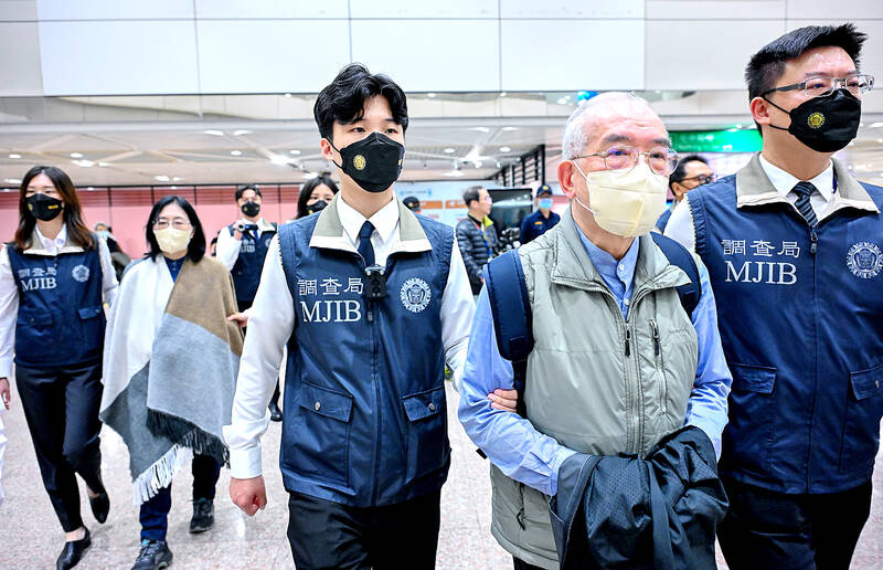 Huang and his wife departed for Taiwan from Toronto on Thursday and were handcuffed by Investigation Bureau personnel upon arrival yesterday, investigators said.