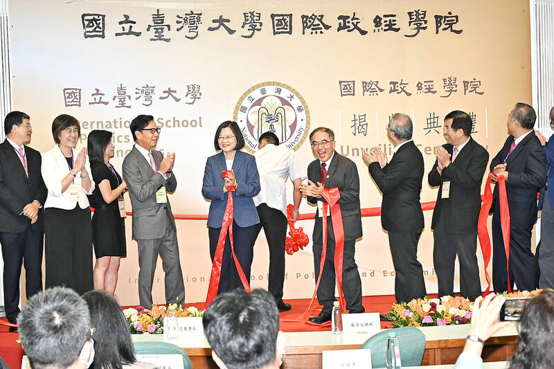 The International School of Politics and Economics was conceived in response to the growing importance of new technologies and geopolitics in recent years, NTU President Chen Wen-chang (陳文章) said during a plaque-unveiling ceremony held at NTU’s campus.