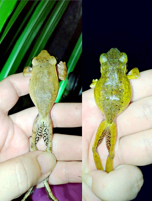 Researchers in 2015, 2019 and last year detected more calls from Hong Kong whipping frogs near New Taipei City’s Feitsui Reservoir (翡翠水庫), implying a decline of native frogs, it said.
