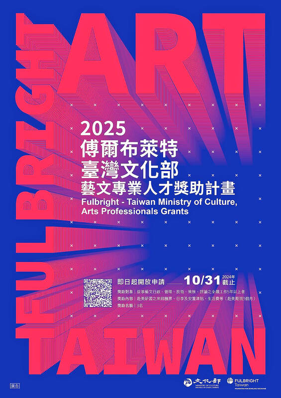 The Fulbright exchange program for Taiwanese arts professionals and their counterparts in the US is open for applications, the Ministry of Culture said on Monday.