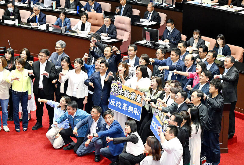 DPP caucus deputy chief executive Michelle Lin (林楚茵) wrote on Facebook that the KMT’s first move after expanding the powers of the Legislative Yuan was to attempt to reclaim party assets.