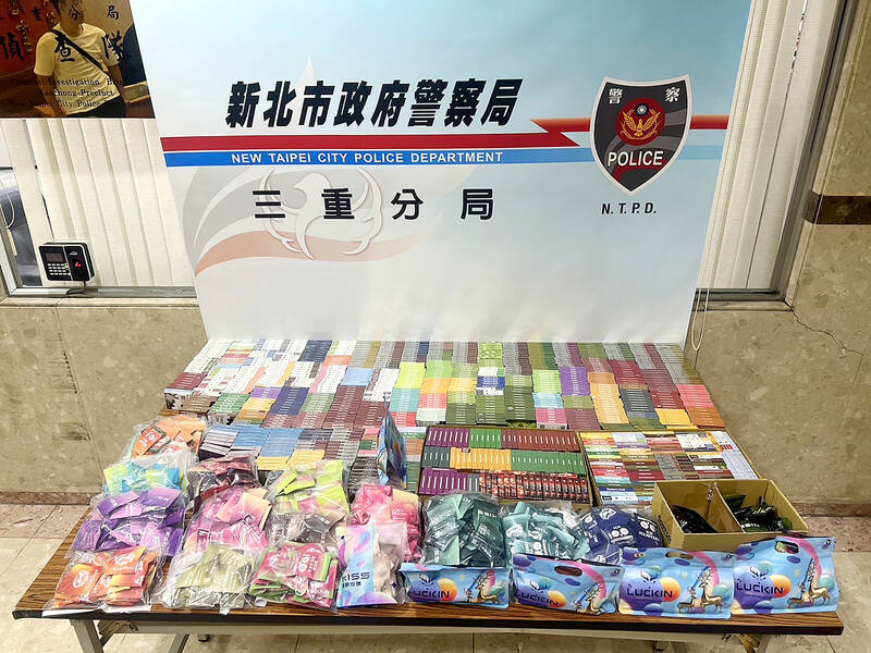 The drug bust was conducted on Thursday last week, after receiving an anonymous tip that a Sanchong District (三重) resident had amassed a substantial number of vape pods at his home, the precinct said in a press release.