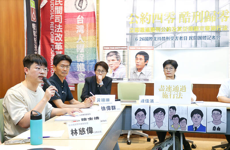 The groups yesterday called a news conference at the legislature in Taipei to mark UN International Day in Support of Victims of Torture.