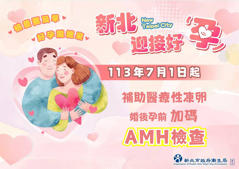 Egg freezing subsidies for cancer patients are being offered in Taipei, New Taipei City, Chiayi City and Taoyuan City, while social egg freezing subsidies are available at Taoyuan City, Hsinchu City, Yunlin County and Miaoli County, Wu said, adding that the subsidies range between NT$20,000 and NT$35,000.