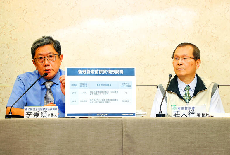 Centers for Disease Control (CDC) Director-General Chuang Jen-hsiang (莊人祥) said the centers selected vaccines targeting the JN.1 variant for the fall and winter, as newer vaccines targeting the KP.2 variant are not expected to be available outside North America soon.