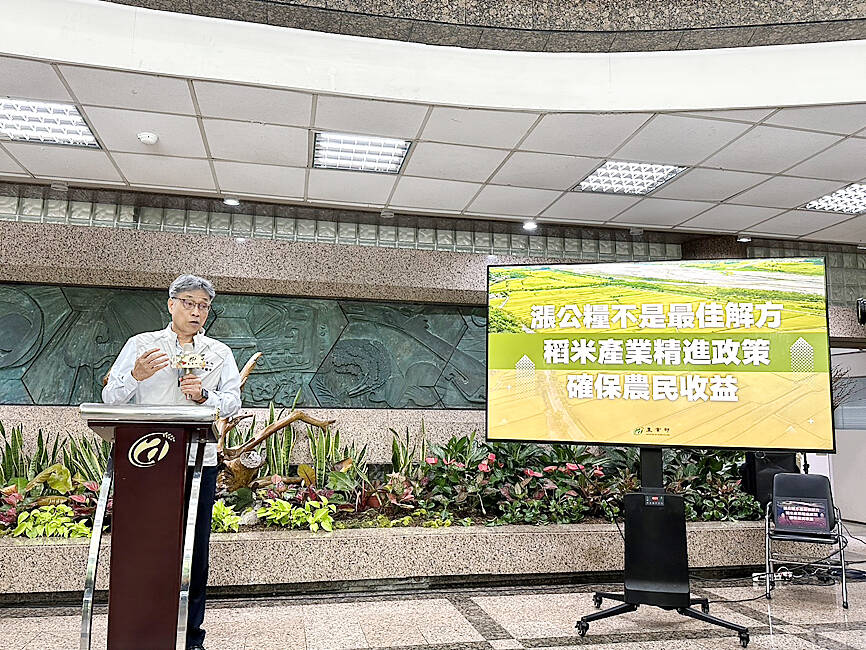 The proposal to hike the base price for the government purchase of rice would increase the government’s annual budget by NT$11.3 billion (US$347.6 million), whereas the ministry’s policy is estimated at NT$2 billion, he said.