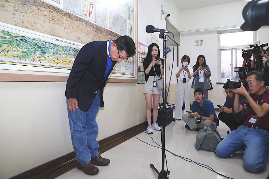 Lai bowed and apologized while speaking to reporters at the legislature.