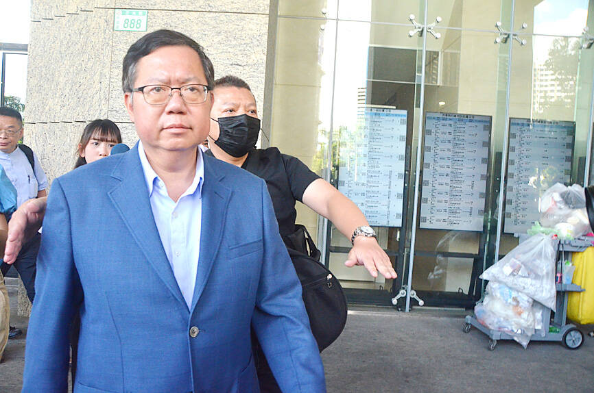 The case came to light on Friday last week, when Cheng was summoned by the Taoyuan District Prosecutors’ Office as part of an investigation into alleged corruption involving a land zoning deal while he was mayor of Taoyuan.