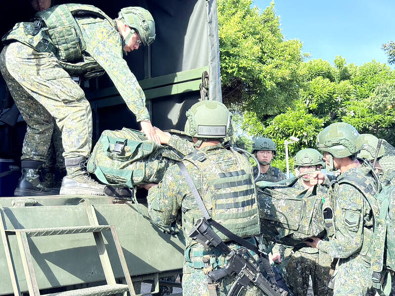 “We are trying our best to slow them down as much as possible,” a military officer told reporters, referring to a scenario in which the enemy was trying to make landfall by sending rubber boats up Tamsui River.