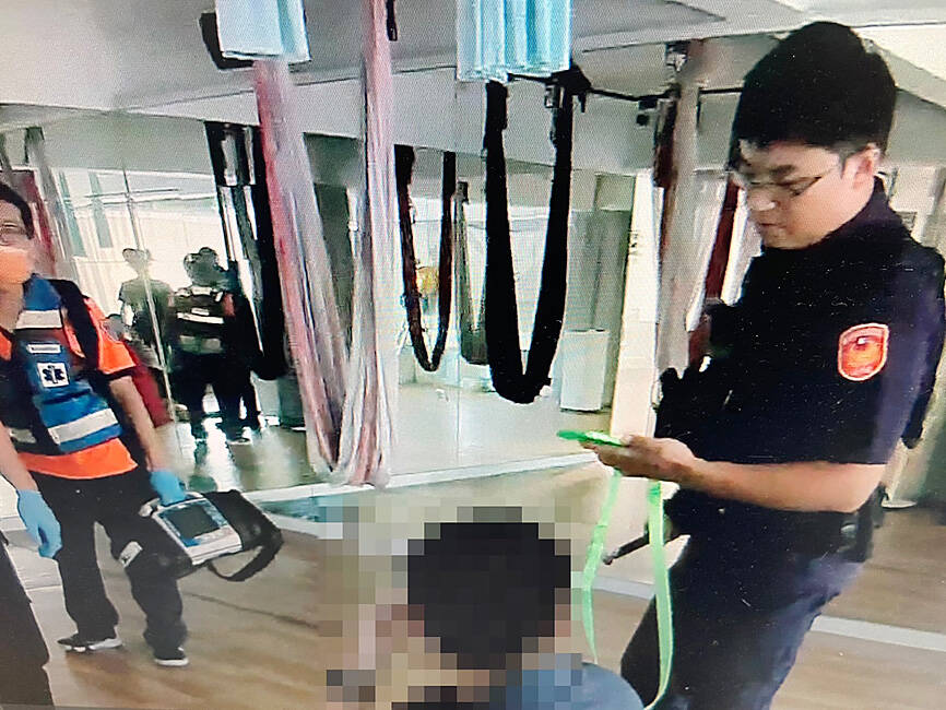 The Tainan City Police Department’s Second Precinct warned the public of the risks while doing sports, saying that one should be accompanied by others or under professional instructions when doing sports with auxiliary means, such as aerial yoga, to ensure safety.