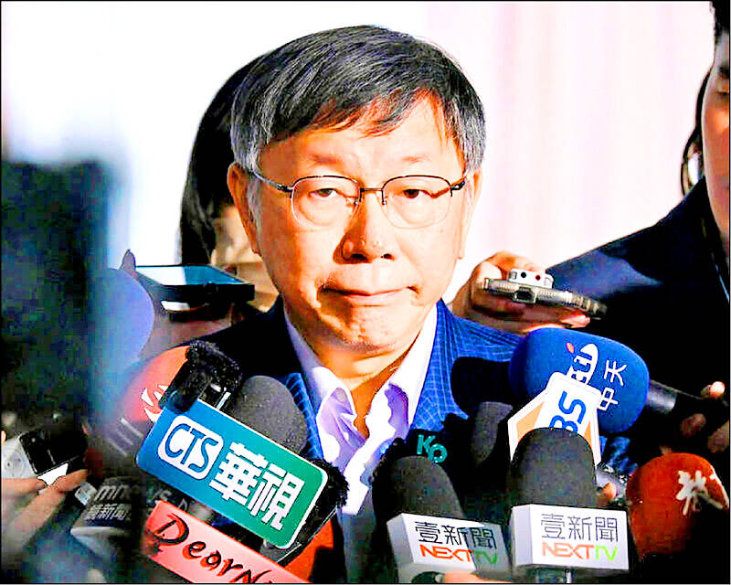 The speculation by pundits was based on the Control Yuan’s open data on political donations, with one pundit questioning why more than NT$10 million (US$324,400) labeled as “licensing fees” were transferred to a public relations firm, the head of which was a financial officer for Ko’s election campaign.
