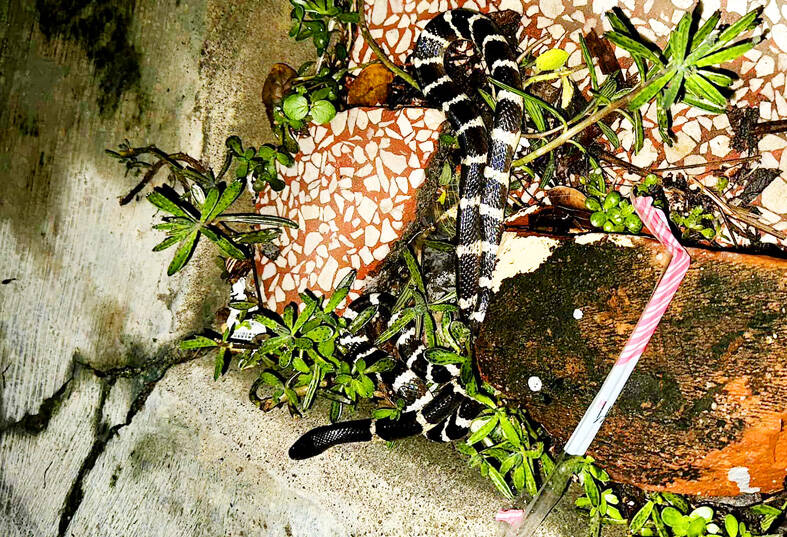 The banded krait is one of the six most venomous snakes in Taiwan, and they can grow to 2m in length, snake handler Cheng Kun-yan (鄭琨諺) said on Sunday.