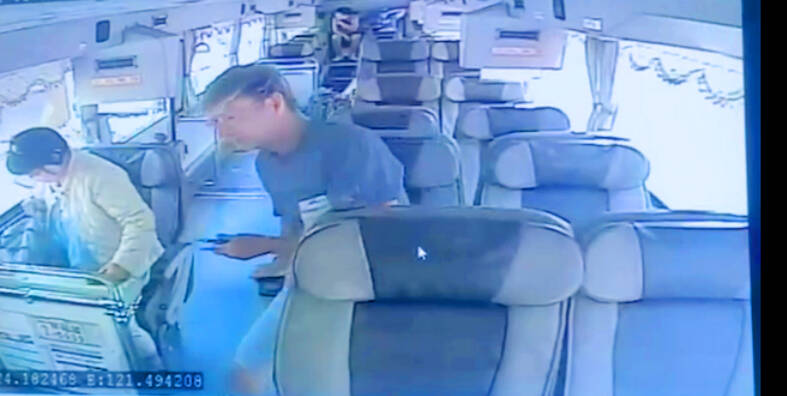 Klausnitzer’s last sighting was recorded by surveillance footage on March 26, showing him exiting a bus at Taroko Gorge’s Tiansiang Village (天祥) at 9:04am, entering Siangde Temple at 9:27am and leaving 20 minutes later, Chen said.
