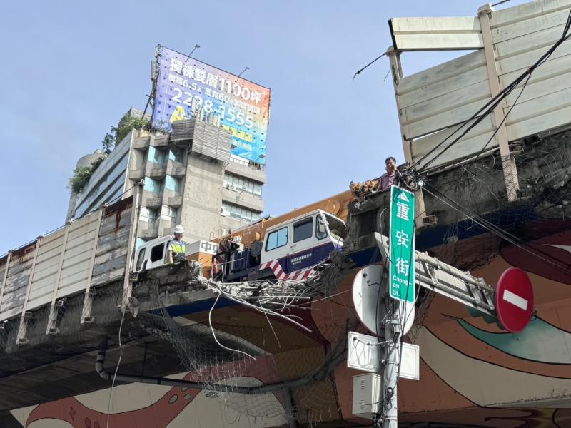 By 10:24am, the overpass heading toward Zhongxiao Bridge had reopened to single-lane traffic, Hou said.