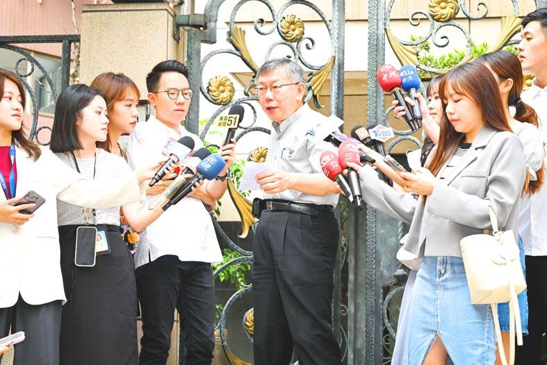 In other news, Ko’s wife, Peggy Chen (陳佩琪), is to appear at a Taipei City Hospital ethics hearing today over a Facebook post that seemingly suggested that she had contravened rules regulating civil servants.