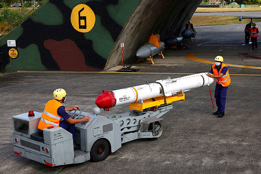 Parts of the Hai Feng Shore-Based Anti-ship Missile Group would be moved under the new command to form four different strike groups, armed separately with improved-range Hsiung Feng II and Hsiung Feng III missiles, as well as Harpoon missiles to effectively counter the Chinese People’s Liberation Army Navy, they said.