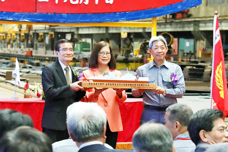 At the ceremony, CSBC chairman Huang Cheng-hung (黃正弘) said the ship would be 124m long and 16.5m wide, with a depth of 8m.