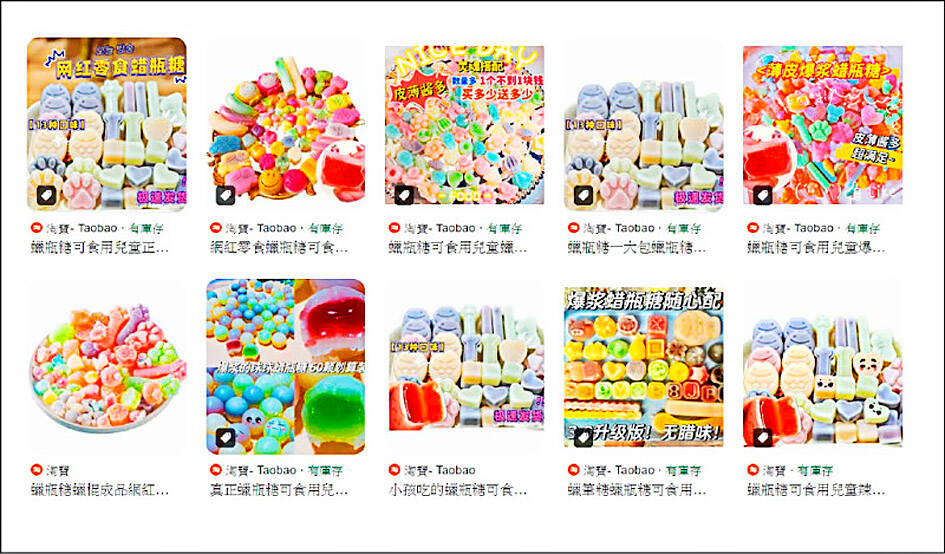 The Ministry of Health and Welfare has ordered the Food and Drug Administration (FDA) to investigate “wax candy” products from China that have appeared for sale on Taiwanese shopping sites, Deputy Minister of Health and Welfare Lin Ching-yi (林靜儀) said on Tuesday. The sellers might have contravened the Act Governing Food Safety and Sanitation (食品安全衛生管理法) as well as the Regulations Governing Trade Between the Taiwan Area and the Mainland Area (台灣地區與大陸地區貿易許可辦法) if they did not obtain a permit to import the products, Lin said. Information on the e-commerce sites shows that the candies have an outer layer of wax encasing jam or syrup, she said. However, the contents are likely to be processed foods, made with artificial flavors and coloring, she said, adding that the candies raise food safety concerns. People should exercise caution before buying the products because it is uncertain whether they contain illegal additives, she said. People can report suspicious products to their local health bureaus, she added.