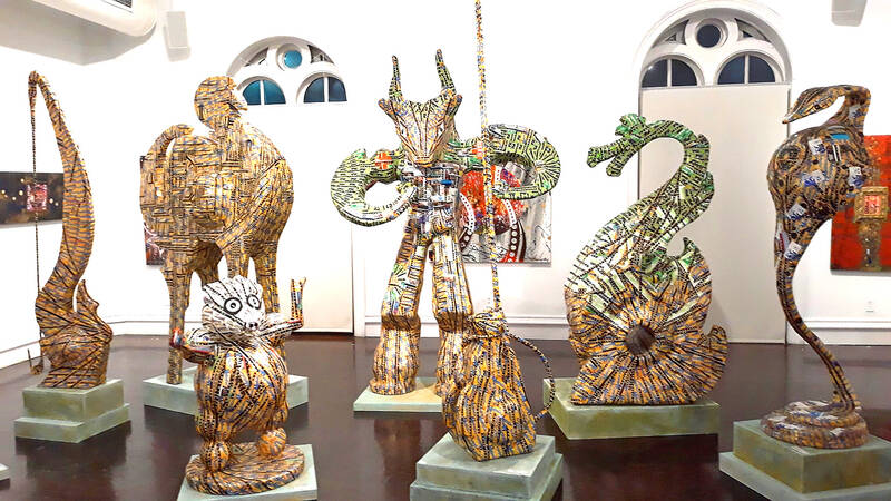 An exhibition of New York-based Taiwanese artist Lin Shih-pao’s (林世寶) Chinese Zodiac series of sculptures made from donated New York MetroCards opens today in the city’s World Trade Center subway station.