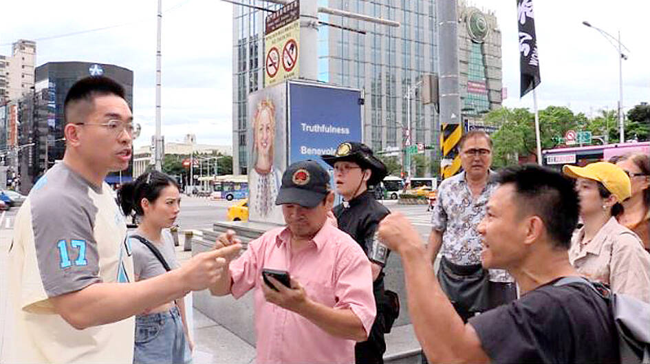 Taiwanese independence advocate Lee Wen-pin (李文賓) and the man reportedly pushed and slapped each other.