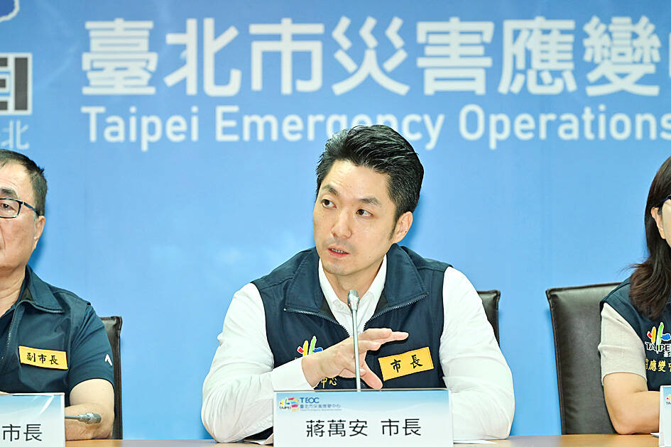 Speaking at a Taipei City Council meeting yesterday, Chiang said the decision was made due to the possibility of landslides and other problems in mountainous areas, the need to avoid a potentially dangerous commute for those traveling between Taipei and surrounding cities, and possibly strong winds in the afternoon.