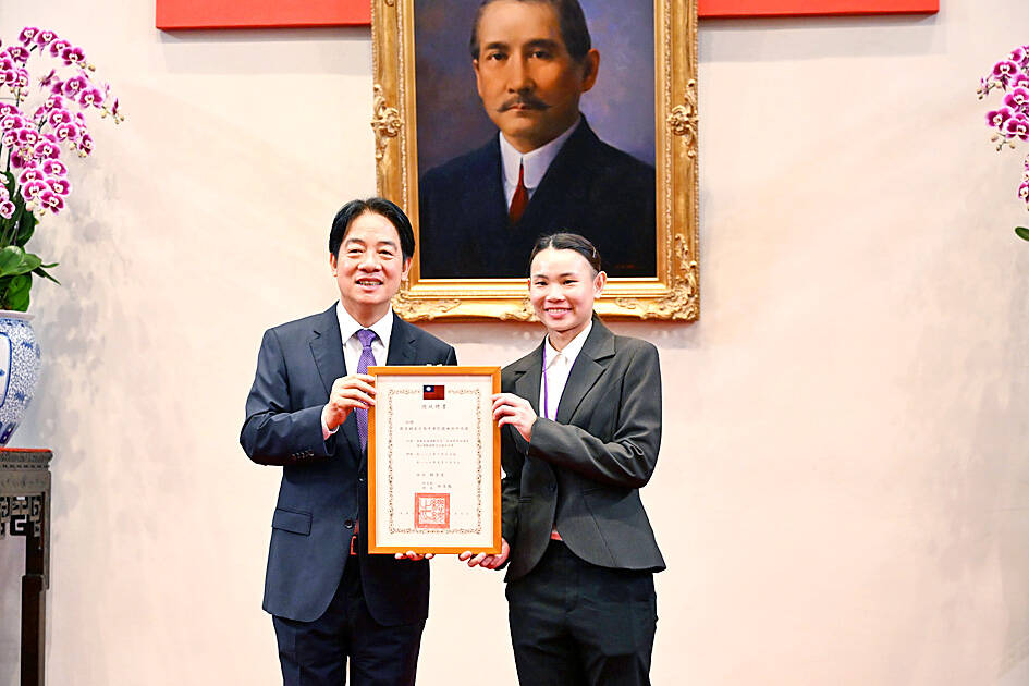 Taiwanese badminton ace Tai Tzu-ying (戴資穎) has become the nation’s youngest ambassador without portfolio as she received a certificate of appointment from President William Lai (賴清德) at the Presidential Office yesterday.