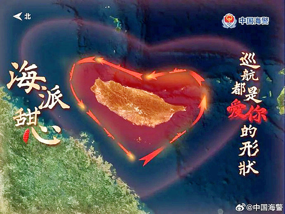 The China Coast Guard said the route was shaped like a heart “because they could not stop loving Taiwan even when on duty.”